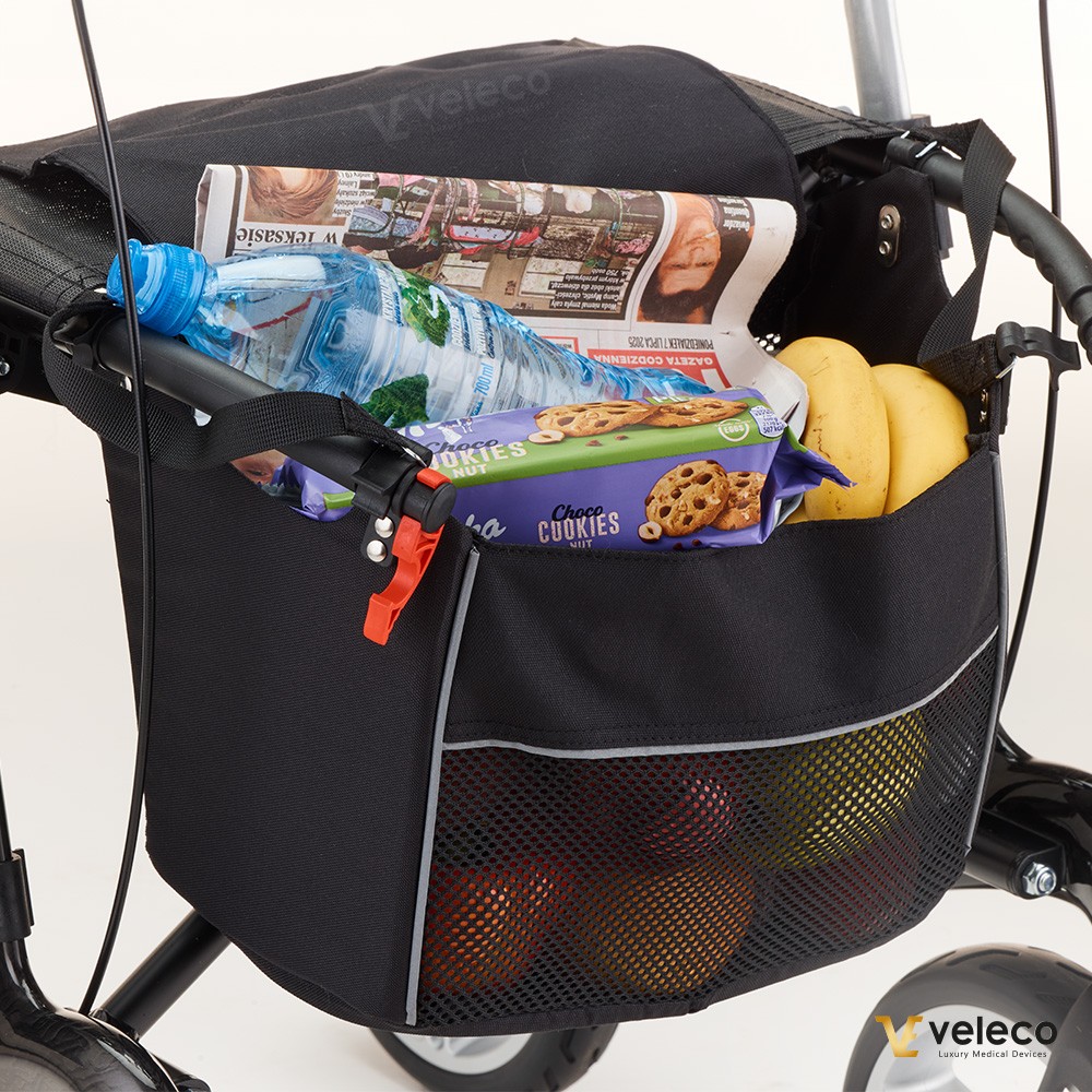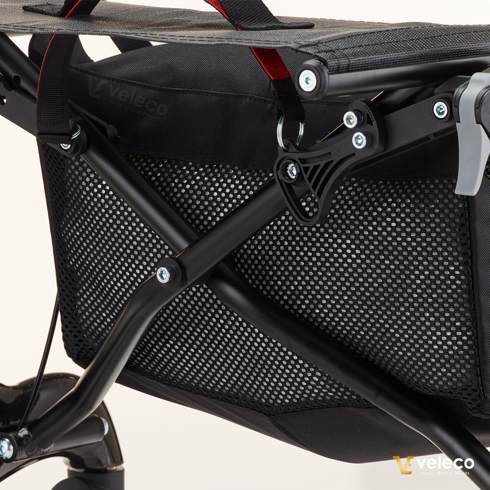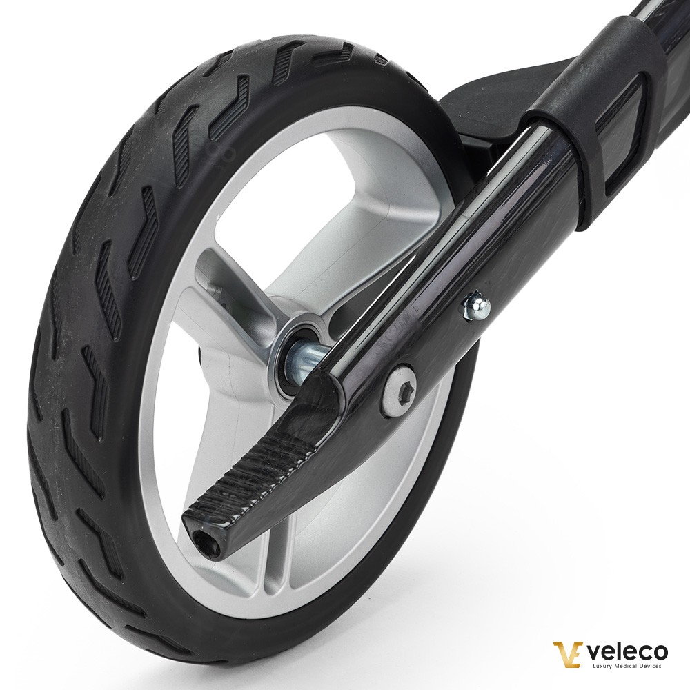Veleco FLEXO Carbon is designed with simplicity and comfort in mind. Thanks to its ultra-light carbon fiber frame, it’s incredibly easy to maneuver — even for those with limited strength. The integrated parking brake gives you full control, letting you safely lock the wheels whenever you need to pause and rest. With its ergonomic, built-in seat, FLEXO Carbon offers a comfortable and reliable place to sit, wherever your day takes you.
