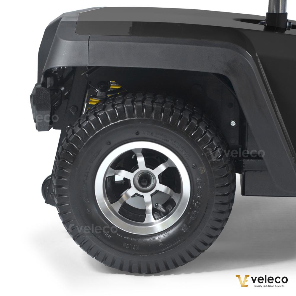 El Veleco SHARPY PRO cuenta con freno magnético, cinturón de seguridad, suspensión elevada y neumáticos todoterreno más grandes para una estabilidad superior. Dos pequeñas ruedas estabilizadoras garantizan un viaje seguro incluso en superficies irregulares. Diseñado para comodidad y fiabilidad, este scooter cumple con estrictas normas de dispositivos médicos de la UE y lleva orgullosamente la marca CE, siendo una opción segura y confiable para aventuras al aire libre.